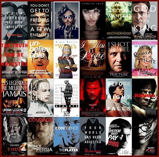 现在的电影大片是一部接一部,电影海报设计者的工作量也越来越大,不过他们已经学会投机取巧啦,原来海报设计也是有模板的,哈哈